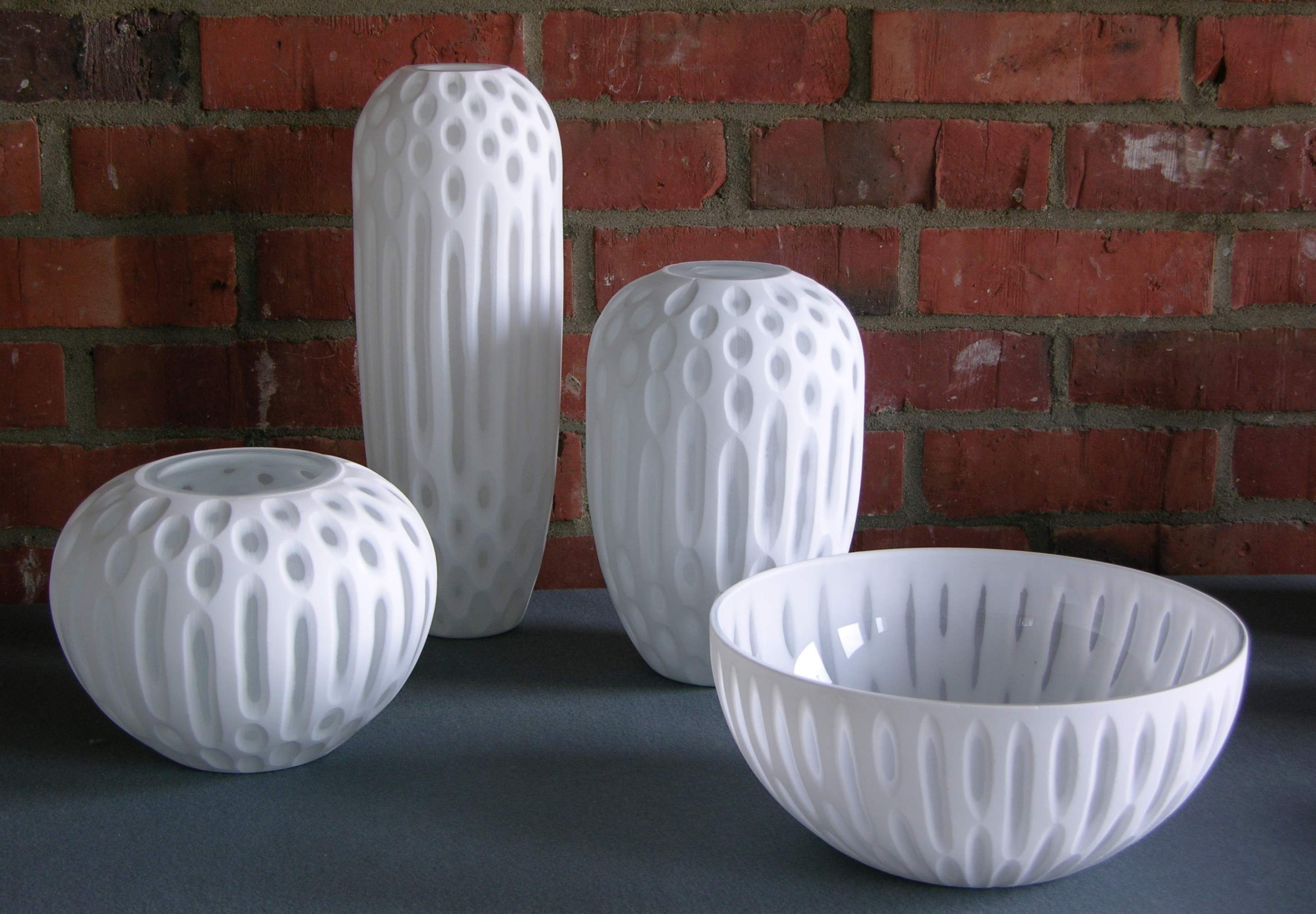 Die Kollektion besteht aus wunderschönen handgefertigten Schalen und Vasen aus Glas-Keramik