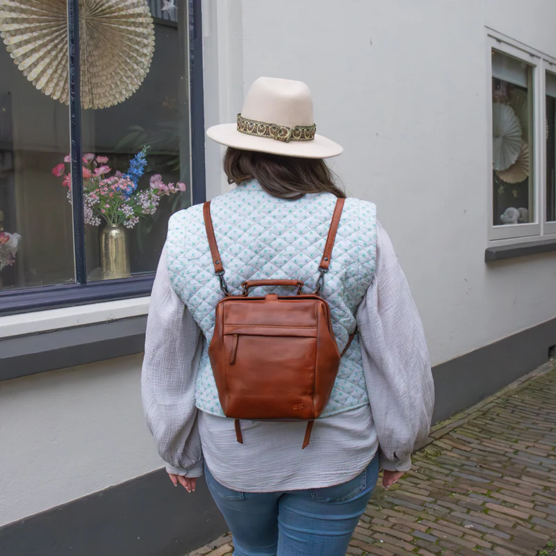 backpack, cognac