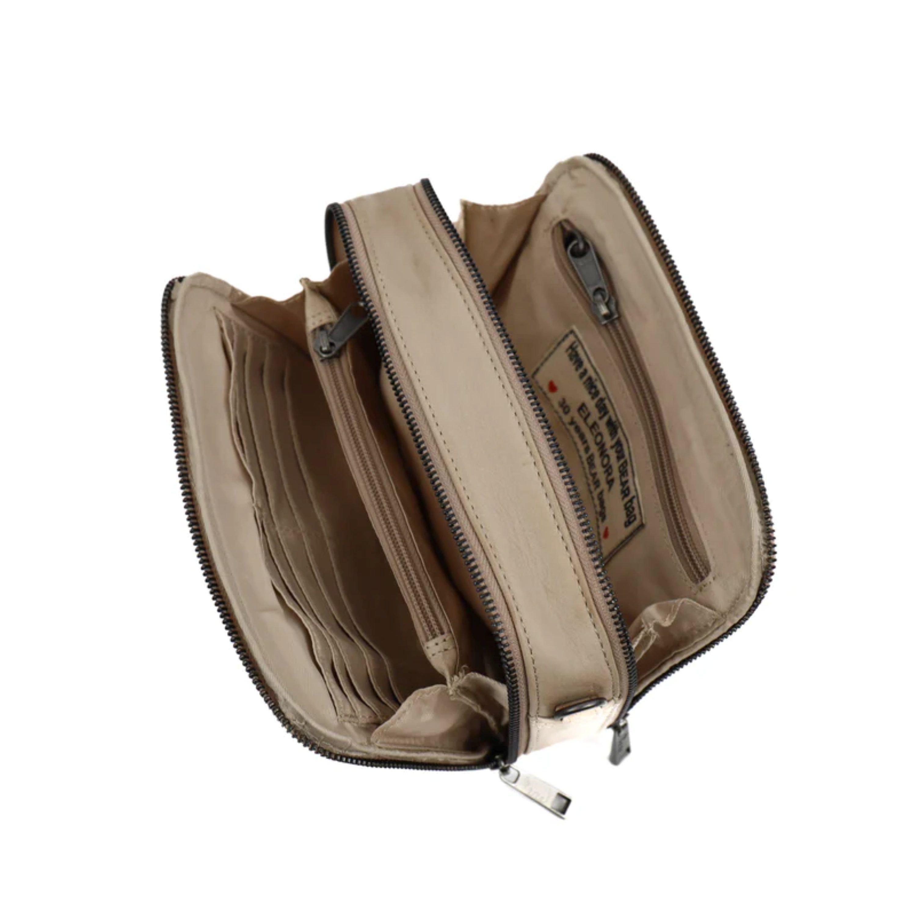 - Vorderfach: abgetrennt mit Reißverschlussfach und 8 Kartenfächern;